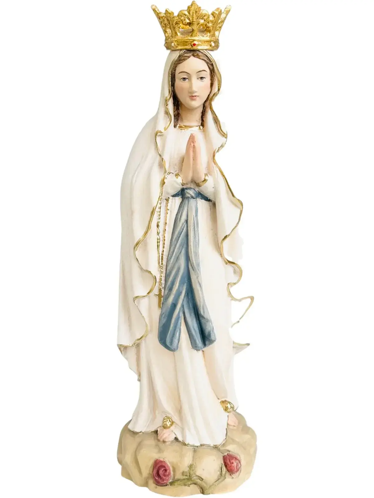 Den smukkeste gave du kan give din sjæl. Den hvide Himmel Dronning er håndskåret i ahorntræ og herefter håndmalet af de mestre, der leverer figurer til kirker i Italien og hele verden og endda til Vatikanet i Rom. De er kendt for deres smukke håndværk, og dette firma har skåret religiøse træfigurer i mere end 150 år.
