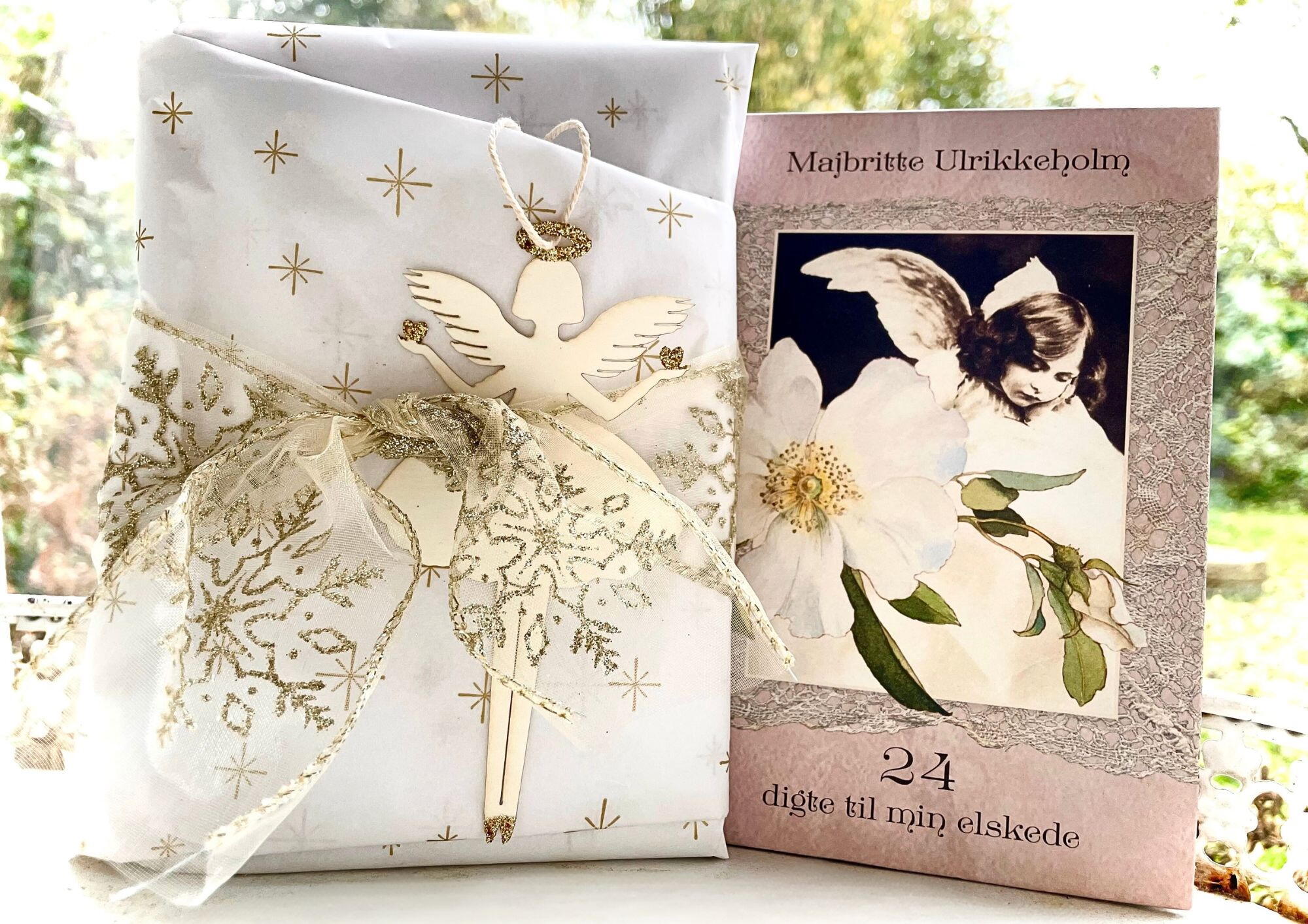 Bogen er signeret og pakket i særligt eksklusiv gaveindpakning med engel.