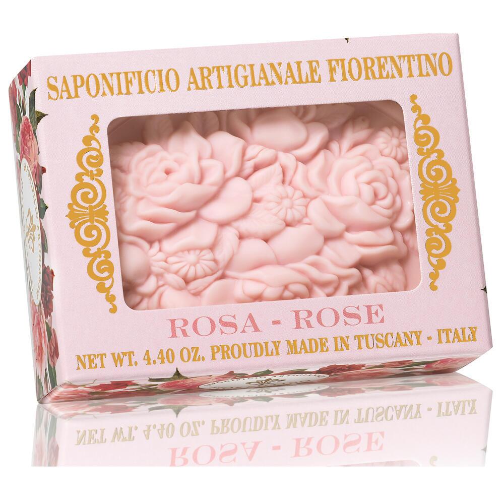 Sæbe som lille kunstværk vegetabilsk/italiensk håndlavet 125 g i smuk æske med guldtryk ROSE
