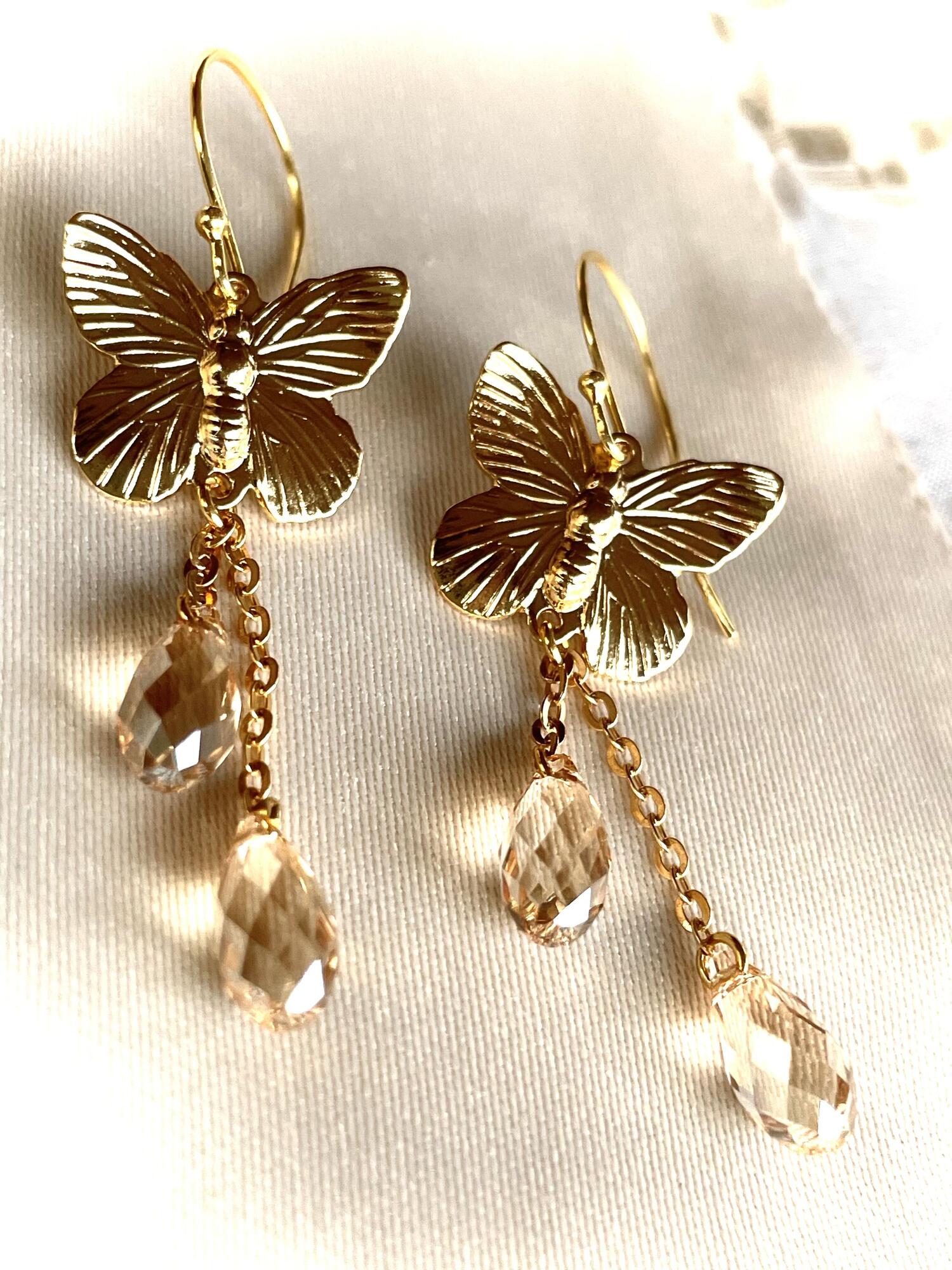 Selve øreringen og sommerfuglene er forgyldt med 18 K guld, og de smukke dråber er østrisk krystal.