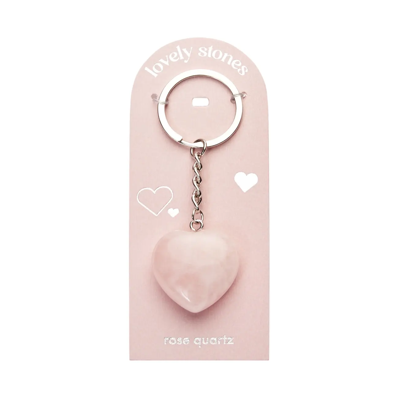Den smukkeste nøglering med hjerte af Rosenkvarts, som siges at tiltrække kærlighed, opløse negativitet og fremme tilgivelse.