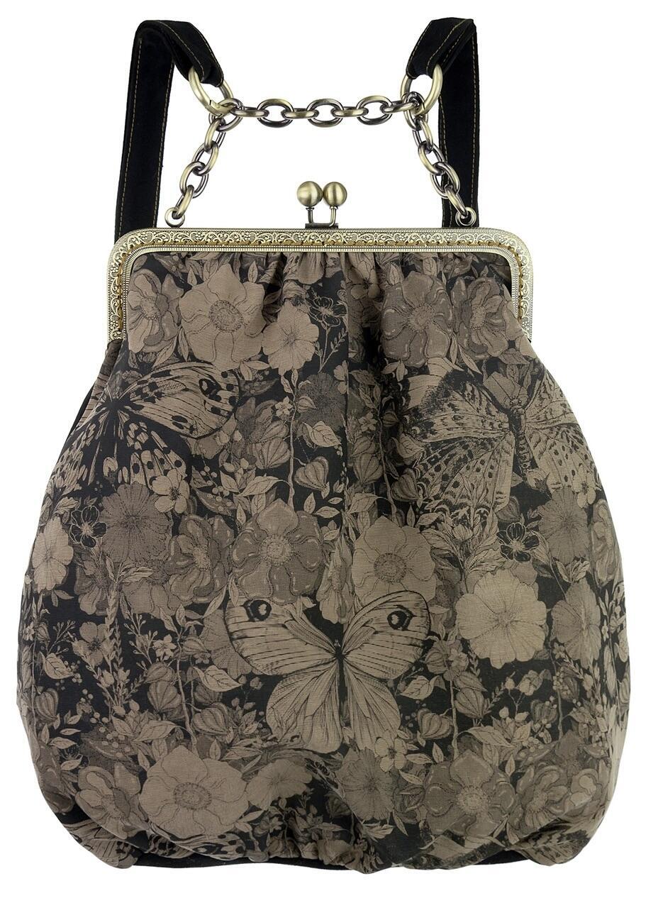 Forsiden af rygsækken er af bomuld/viskose. Bagsiden og de justerbare stropper er også af bomuld. Rygsækken er fuldt foret og har to lynlåslommer: en indvendig og en “skjult” på bagsiden. Stroppernes længde kan justeres, og det er også muligt at ændre placeringen af kædehåndtagets stropper. Rygsækkens højde er 32 cm, den er ca. 30 cm bred forneden, mens låsen måler 20 cm i bredden og er håndsyet sting for sting på tasken.
