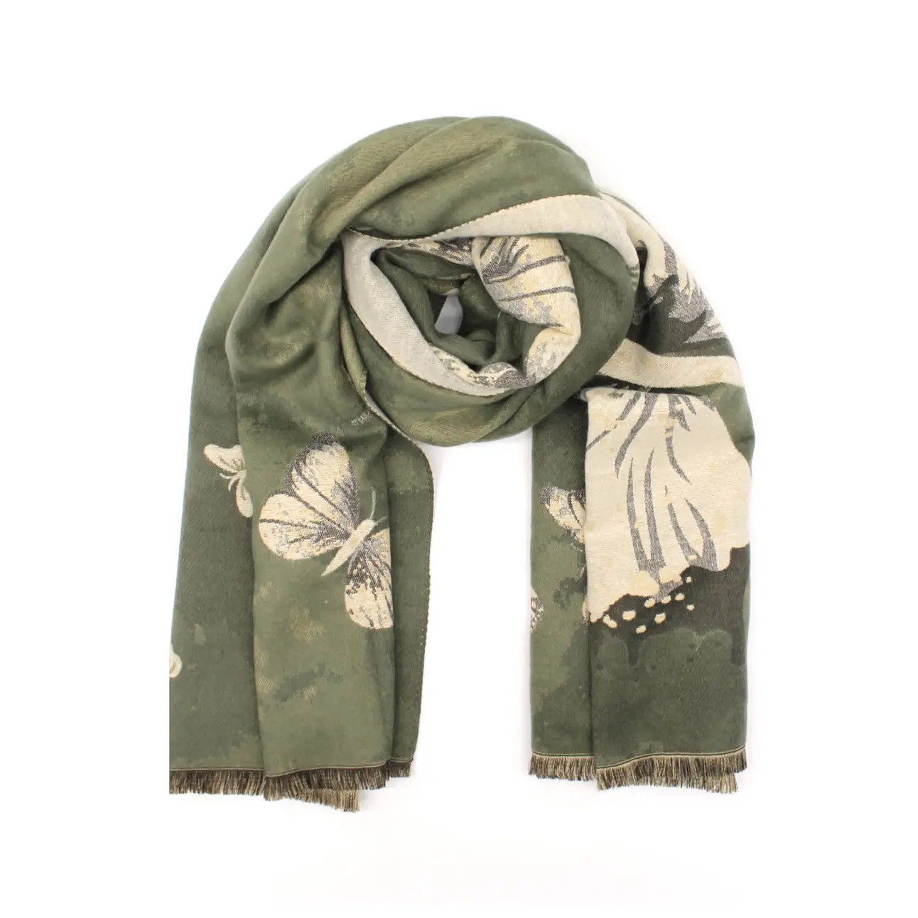 Sommerfugle-tørklæde 80% viskose 20% uld GRØN kommer om en uge